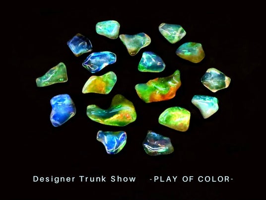 “プレイオブカラー”と呼ばれる七色を持つオパールを中心に