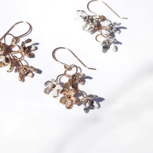 あえてお花が動くように作っているので、身に着けるとお花が揺れて可憐な印象になるのも魅力。