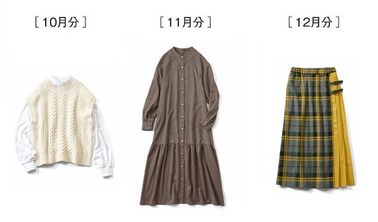 ※10月分トップスセット、11月分ワンピース、12月分チェックスカートの順でキャンペーン価格でお届けいたします。