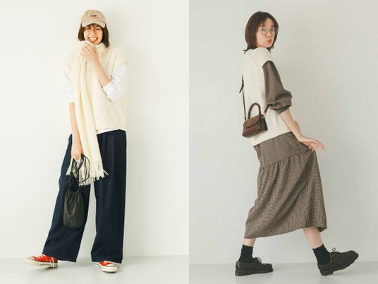 フェリシモが展開する、ファッションブランド「Live in comfort[リブ イン コンフォート]」は、人気スタイリスト石上美津江さんとの初めてのコラボ新作を発表、8月30日よりウェブ販売を行っています。セットで単品でいろんなコーデが楽しめる「カットソートップスとニットベストセット」、着こなしやすい“横だけ無地”の配色が特徴の「巻きスカート風チェックスカート」、流行に左右されないシルエット&チェック柄の「はおれるチェックのワンピース」の3アイテム。これだけでいくつもクロスコーデができ、手持ち服との相性がよく、おしゃれの可能性が広がります。今回の3アイテムは、1回のお申し込みでキャンペーン価格で購入できる3ヵ月エントリーキャンペーンも行っています。