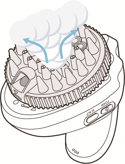 シャンプー時の泡の役割は“頭皮の皮脂や汚れを吸着・浮かし除去すること”です。そこで本商品は、キメ細かな“泡”に着目して開発しました。“泡”は髪を包み込んでクッションの役割となり、シャンプー時の髪同士の摩擦も軽減します。また、サロンでのシャンプー時間(約3分)をイメージした、3分間のバイブレーションモードも搭載しています。