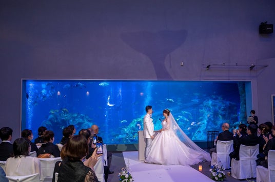 青の世界で優雅に泳ぐ魚たちにも祝福されながら、記憶に残るスペシャルなウエディングはいかがでしょうか。