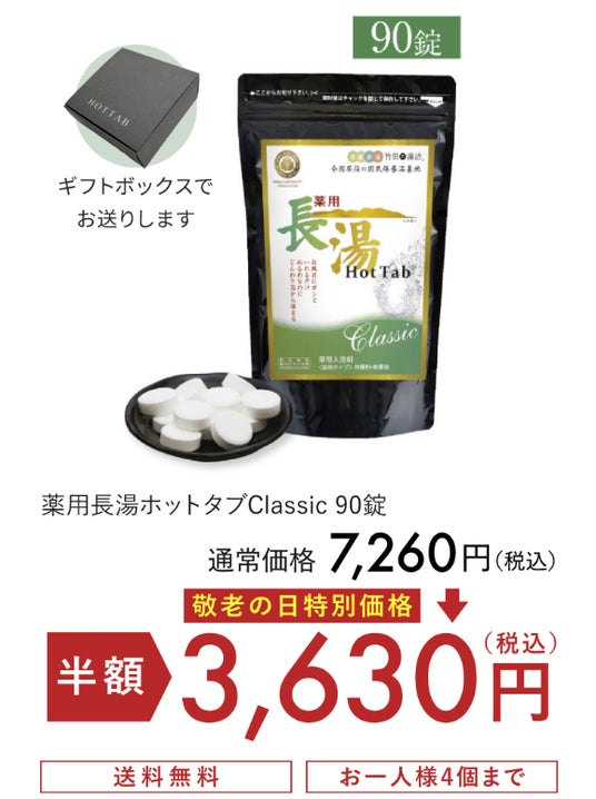 大切なご両親に、今年の敬老の日は“自宅のお風呂で長湯温泉気分!”をプレゼントしてみませんか? 長湯温泉の泉質を目指した「長湯ホットタブ」が今だけ半額&送料無料!
