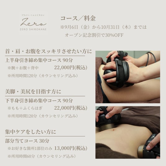 継続しやすい癒やしのトリートメントで理想の身体を目指す、「ZERO SHIROKANE」のサービスを体験してください。