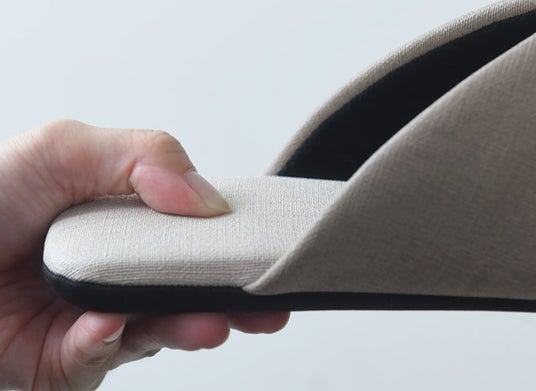 アッパーやインソールに特別な機能素材を使うことで、アルコール&次亜塩素酸除菌対応に仕上げたスリッパ。一般的なファブリック素材だとアルコール非対応ですが、こちらは気兼ねなく消毒できます。