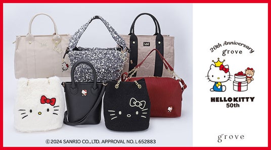 ワールドグループの株式会社アルカスインターナショナルが展開するレディースのファッションブランド「grove(グローブ)」は、株式会社サンリオのキャラクター「ハローキティ」50周年とグローブ20周年を記念したアニバーサリーコラボバッグを、オンラインストアでは9月27日(金)より先行発売、店頭(一部を除く)では9月30日(月)より順次発売いたします。