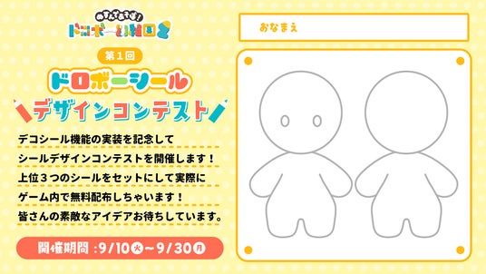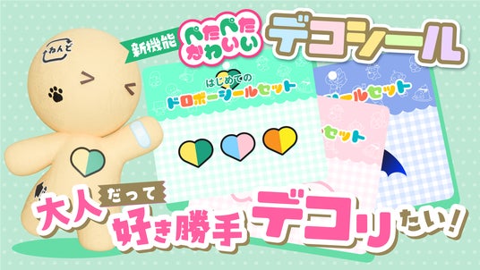 9月13日(金)に配信されるアップデートにより、自分のドロボーちゃんにかわいいシールを自由に貼れる機能が追加されます。