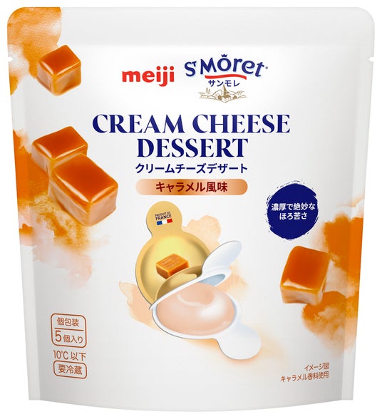 「明治サンモレ クリームチーズデザート ストロベリー風味/同 バニラ風味/同 キャラメル風味」 10月1日 新発売 全国