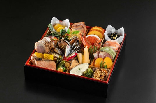 栗きんとん/牛肉笹包み/鶏中華テリーヌ/錦糸玉子包み/伊達巻/なます/いくら醤油漬け/金箔黒豆煮/カニグルメテリーヌ/海鮮ミックスマリネ/合鴨パストラミ/鮑旨煮/小松菜と揚げ煮物/田作り/海老旨煮/数の子/菜の花松前漬/バジル仕立てのチーズロール/黒糖ローストポーク/杏子煮/紅鮭西京焼/烏賊黄金焼/花椒くらげ/ピリ辛小胡瓜/ムール貝冷製オーロラソース/ムール貝冷製マヨネーズソース/ブロッコリーのバジルオイル漬/メープルくるみ/鮎柚子煮