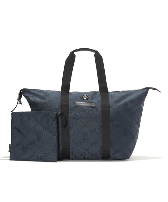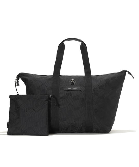 MARK & LONAらしいシグネチャー柄が特徴のデザイントートバッグ。軽量でコンパクトに折りたたむことができ、持ち運びにも便利です。