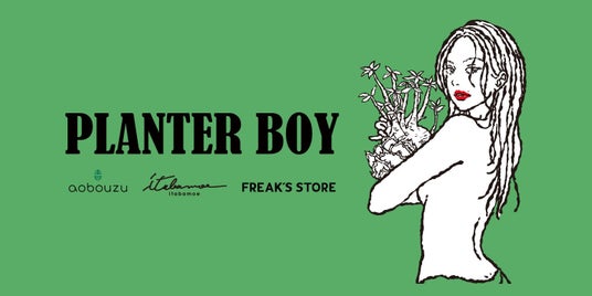 コラボレーションを「PLANTER BOY」と題し、itabamoeが描く上品な女性と、青坊主がもつ植物のカルチャーがエッセンスとして加わったアートをFREAK’S STOREらしいスウェットやライフスタイルグッズに落とし込んだアイテムを展開。植物やアートコレクターではなくとも必見のラインナップとなっています。