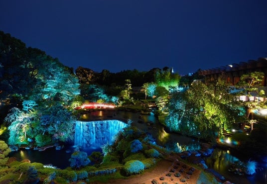昼間は緑を臨む約1万坪の広さを誇る日本庭園では、現在ホテル開業60周年を記念して「フルカラーライトアップ」を実施中。披露宴の最中、ゲストもうっとりするような“光のおもてなし”を堪能して。