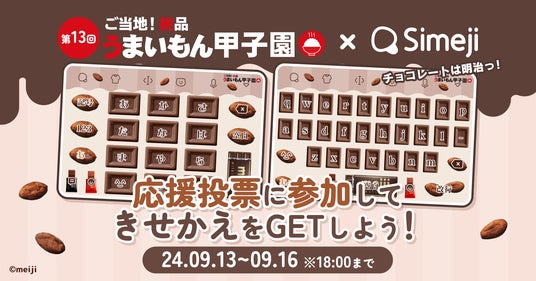バイドゥ株式会社(本社:東京都港区、代表取締役社長:Feng Jiang)が提供するきせかえ顔文字キーボードアプリ「Simeji」(iOS、Android版)は、高校生の夢を応援する食企画「第13回ご当地!絶品うまいもん甲子園」(主催:一般社団法人全国食の甲子園協会)への協賛及び、協賛企業の一社である明治製品が当たるプレゼントキャンペーンを開催いたします!