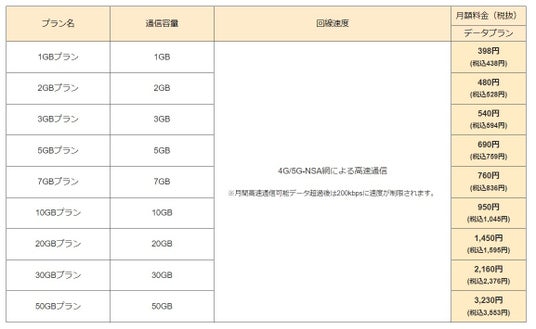 ※月間高速通信可能データ超過後は200kbpsに速度が制限されます。ㅤ