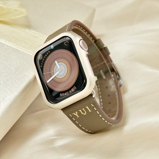 本革ならではの高級感と、使い込むほどに味わいが増していく経年変化を楽しめるアップルウォッチバンド。 刻印されたイニシャルが、時を経ても色褪せない大切な想いを刻みます。