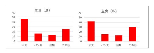 昔から日本の食生活に欠かせないのはお米です。令和5年に行われた農林水産省の調査によれば、主食の割合は、「米食」が4割超(夏:46%、冬42%)で1位、「パン食」(夏:16%、冬:15%)が2位、次いで「麺類」(夏:13%、冬13%)という結果になっており、日本人の主食は米食であることが分かります。