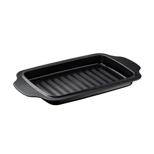 ガス・IHコンロのグリルやオーブントースターで簡単に食材を焼くことができるトレー。溝に余分な脂が落ち、ヘルシーに調理ができます。持ち手付きのためそのまま食卓に運ぶことも可能。