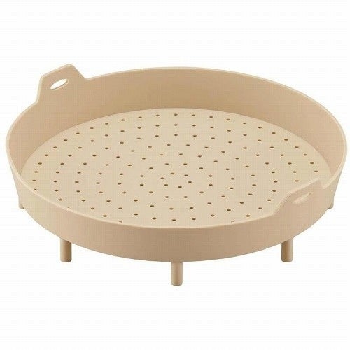 フライパンや電子レンジで蒸し料理を作ることができるシリコーン製スチーマー。フラット&ワイドな底面で食材が重なりにくく、並べやすい構造。穴の開いた底面から余計な油分や水分が落ちて美味しく仕上がります。