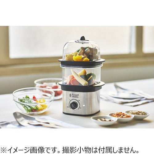 コンパクトでシンプルなデザインの蒸し器。タンクに水を入れてトレイに食材を置けば、タイマーをセットするだけで簡単に蒸しあがります。空焚き防止の機能搭載で安心設計です。