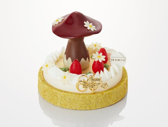 ゴ・エ・ミヨ2023年度ベストパティシエ賞を受賞した延命寺美也氏による、華やかなクリスマスケーキ。ベリーとバラの軽やかなムースの中に、和紅茶のクリームやベリーのジュレ、ミルクチョコレートのガナッシュ、くるみのブラウニーなどを組み合わせました。