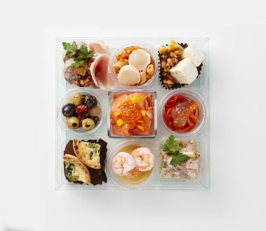 風味豊かな品々を詰め合わせた、華やかな前菜プレート。色々な味わいを少しずつ楽しめるので、大切な人との会話も自然に弾みます。生ハムやチーズ、サーモンとポテトのサラダなど、お酒のお供にもぴったりです。