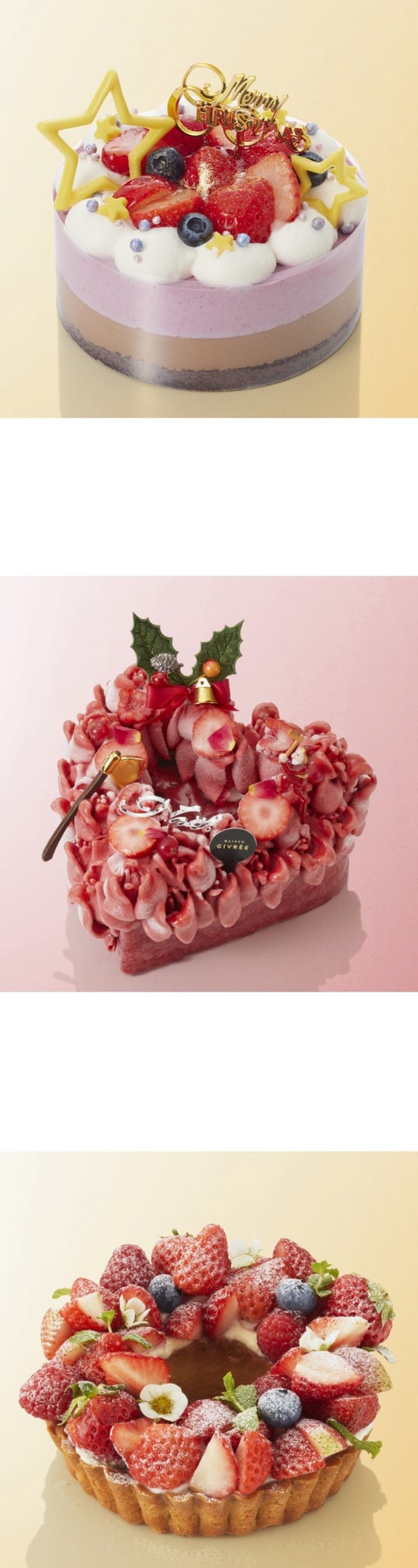 甘酸っぱいミックスベリーと2 層のチョコレートムースで、濃厚なババロアをつつんだケーキ。果物の目利きが厳選した上質ないちごをたっぷりと盛り付け、星のオーナメントやアラザンできらびやかに仕上げてあります。
