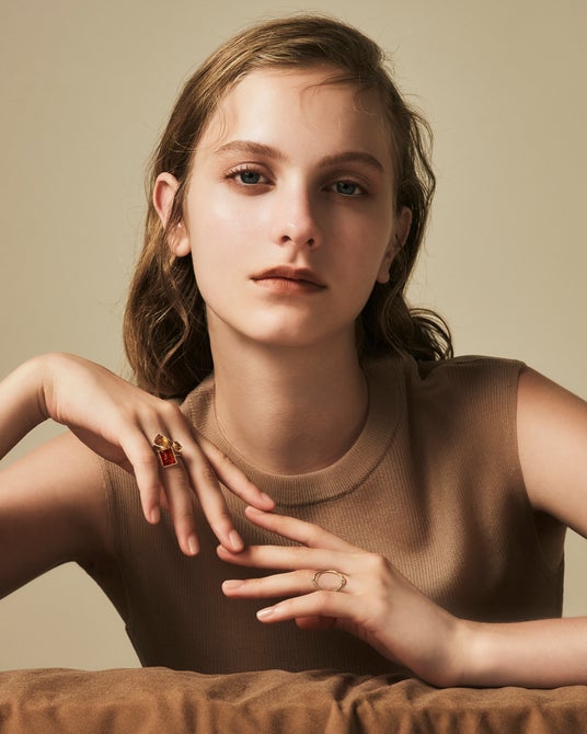フランスのブランデー・コニャックのような温かみのあるオレンジ色のアンバー(琥珀)「コニャックアンバー」にフォーカスし、バルト海産のアンバーを贅沢にあしらったリングや、長い時間をかけて自然が生み出したアンバーの原石のシェイプをイメージしたリングを展開。