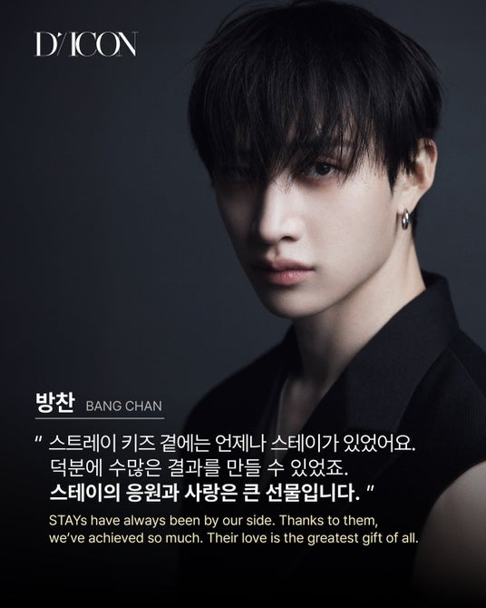 「Stray KidsのそばにはいつもSTAYがいます。皆さんのおかげで数多くの結果を出すことができました。STAYの応援と愛は大きいプレゼントです」(BANG CHAN)