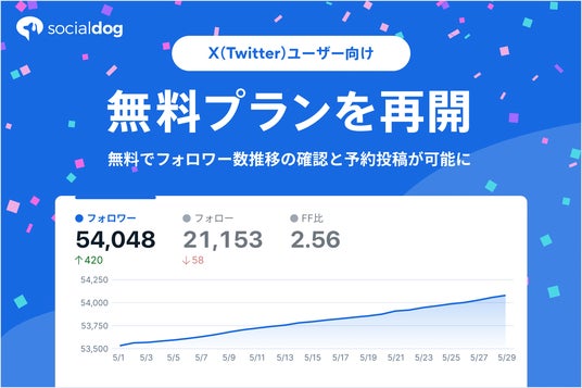 この度、株式会社SocialDog(本社:東京都江東区、代表取締役:小西将史)が運営するSNS管理ツール「SocialDog(ソーシャルドッグ)」( https://social-dog.net/ )は、Xユーザー向けに無料プランを再開したことをお知らせいたします。
