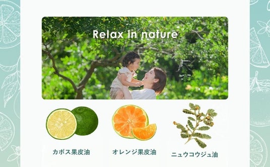 シャンプー時にふわっと香るカボスの香りが、癒しのバスタイムを演出します。