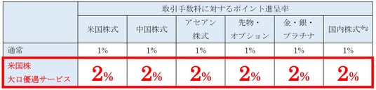 – 外国株式・国内株式など各種取引手数料のポイント進呈率2倍(※2)