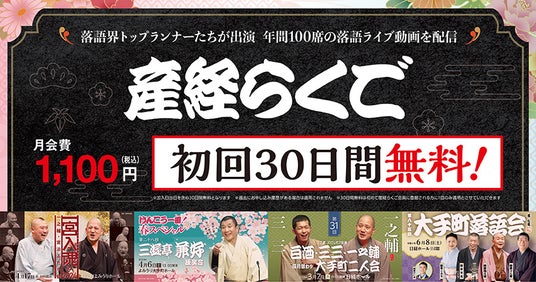 落語界のトップランナーによる旬の公演など年間約100席を配信する落語動画のサブスク「産経らくご」(月額1100円、税込み)。初めて会員登録される方に限り、30日間無料でお楽しみいただけるようになりました。