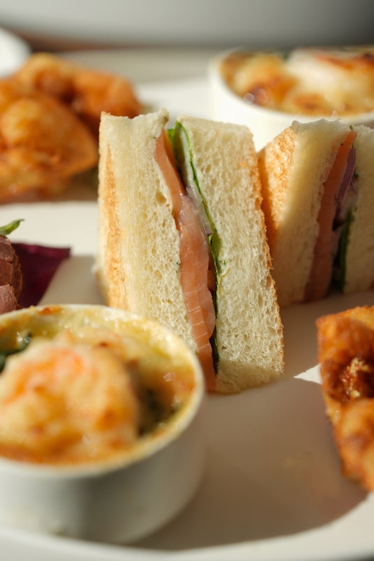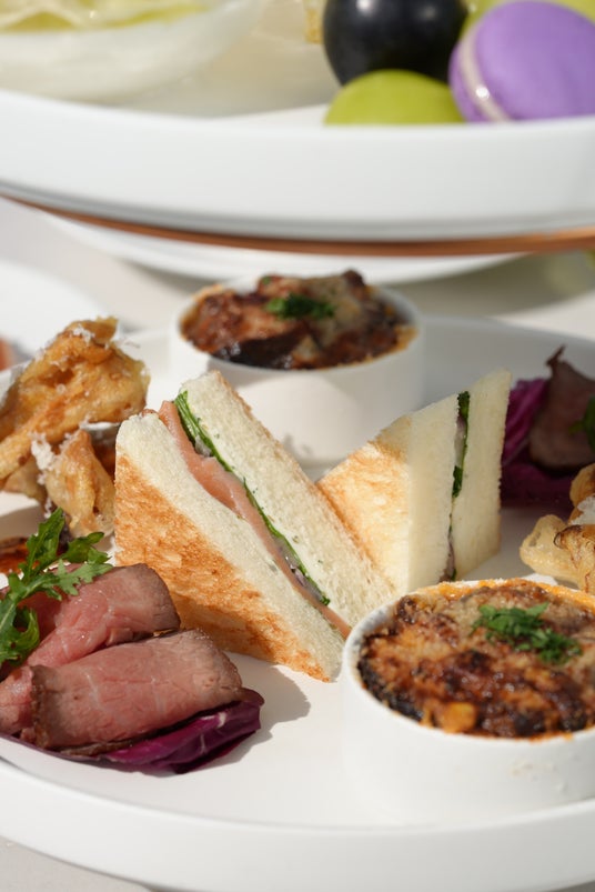 セイボリーは、赤城和牛を使ったローストビーフ、スモークサーモンのサンドイッチ、クリームベースの海老と蔓紫のグラタン、アンチョビとエストラゴンを使用したタルタルを添えたカリフラワーのフリットなどをお楽しみいただけます。