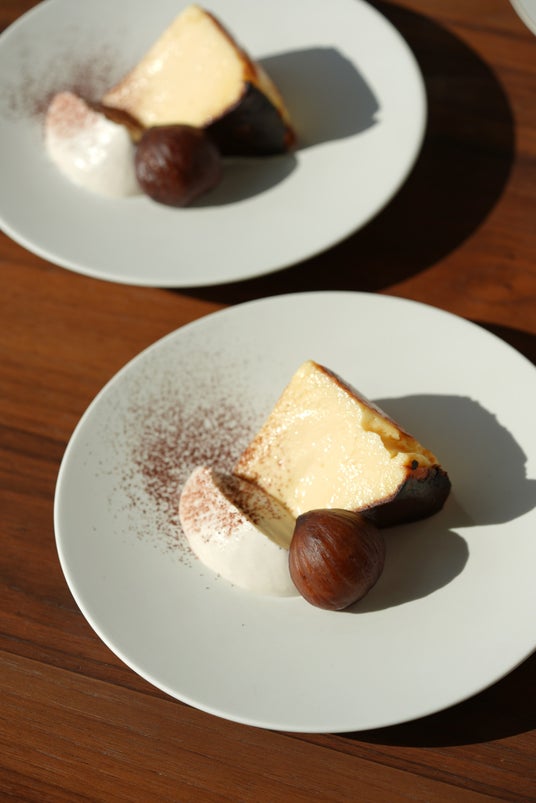 ショートケーキはスポンジにエルダーフラワーのシロップを打ち、しっとりとした食感と華やかな香りが楽しめます。酸味のあるライムカードを使用したタルト、ローズマリーのパンナコッタ&マスカットのジュレ、ナガノパープルのマカロンなど、暑さが残る時期にもさらっと召し上がっていただける爽やかな味わいです。定番のバスクチーズケーキは、レーズンのシャンティとラムのソースを添えています。