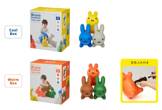 ころんとしたフォルムと可愛いしっぽが特長的なくみくみうさぎは、「Cool Box(イエロー・ブルー・グレー)」「Warm Box(レッド・グリーン・ブラウン)」の2展開で、1セットにつき3体のくみくみうさぎが入っています。お子さまの好きな色の組み合わせを2つの雰囲気から選ぶことができます。成長に合わせて数を増やせば、あそびの幅も広がります。大きくなったら、思い出のおもちゃとしてお部屋に飾ることもできるので、大好きなうさぎとずっと一緒にいられますね。