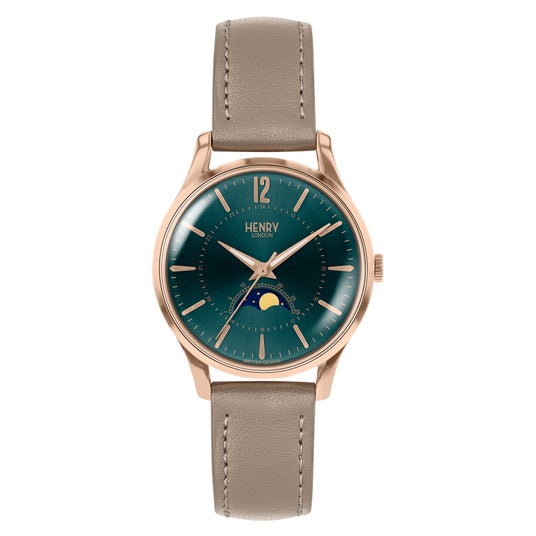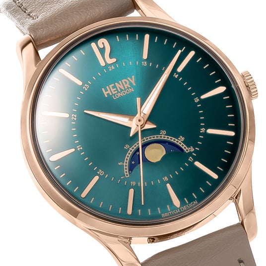 2015年にイギリス ロンドンで創立した、ヴィンテージ・ルックなデザインが特徴の「HENRY LONDON」。 世界中から愛されて、世界70か国で販売されています。ユニークな特徴をもつイギリス生まれのウォッチブランドで、多彩なカラーバリエーションが豊富。ムーンフェイズ機能搭載モデルは、数あるモデルの中でも最も人気の高い、月の満ち欠けがわかる機能を搭載しています。サブダイヤルが回転することで月の状態を表現します。