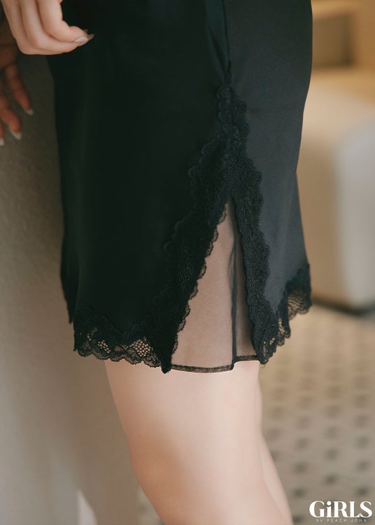 <数量限定>即完売した大人気スリップに新色の「ブラック」が登場!レースやチュールをあしらったガーリーなサテンスリップ。