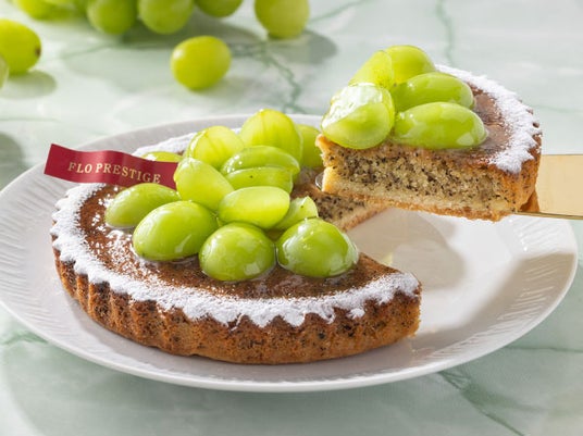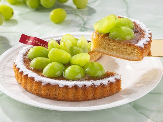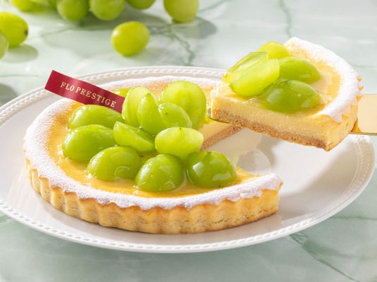瑞々しく色鮮やかなシャインマスカットをたっぷりと使用した「シャインマスカットのタルト」が登場!旬を迎えたシャインマスカットを華やかに盛り付けた直径約14~15cmのホールタルトを、FLOの日限定価格・税込1,285円で販売いたします。