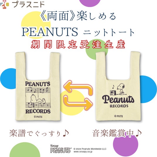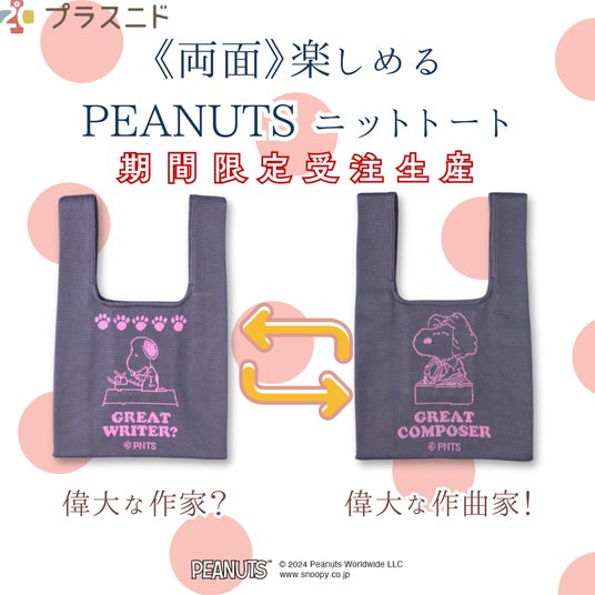 「体感温度を2度上げる」がコンセプトのゲンナイ製薬のブランド【プラスニド:千代田区、代表:上山永生】は【両面楽しめるPEANUTSニットトート】 の受注を10月15日まで受付を開始しています。