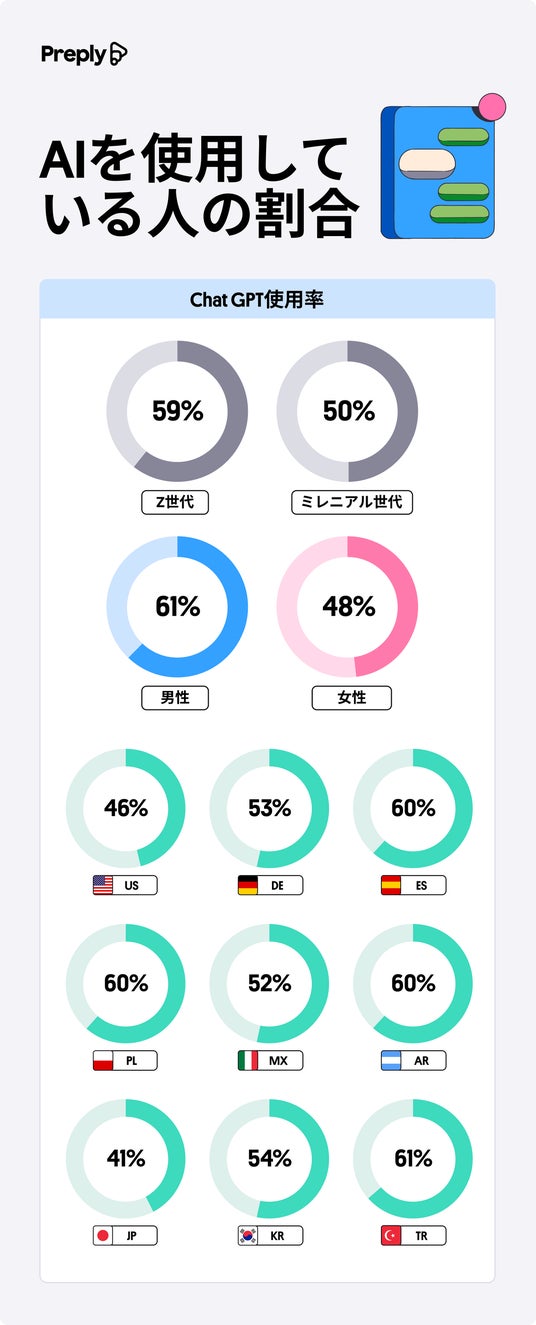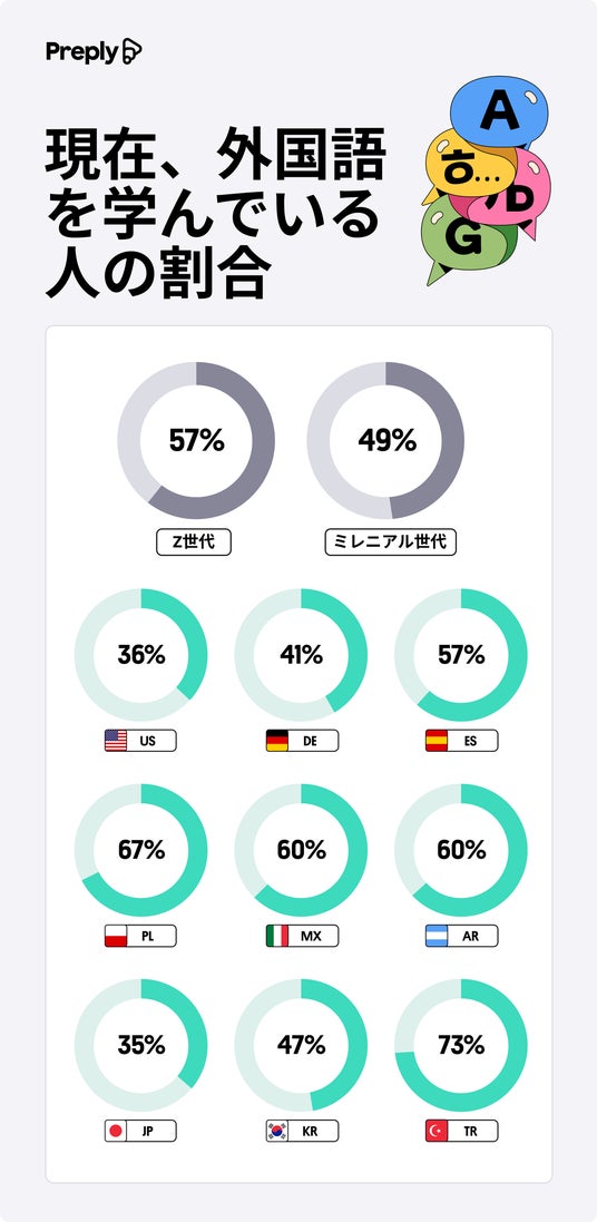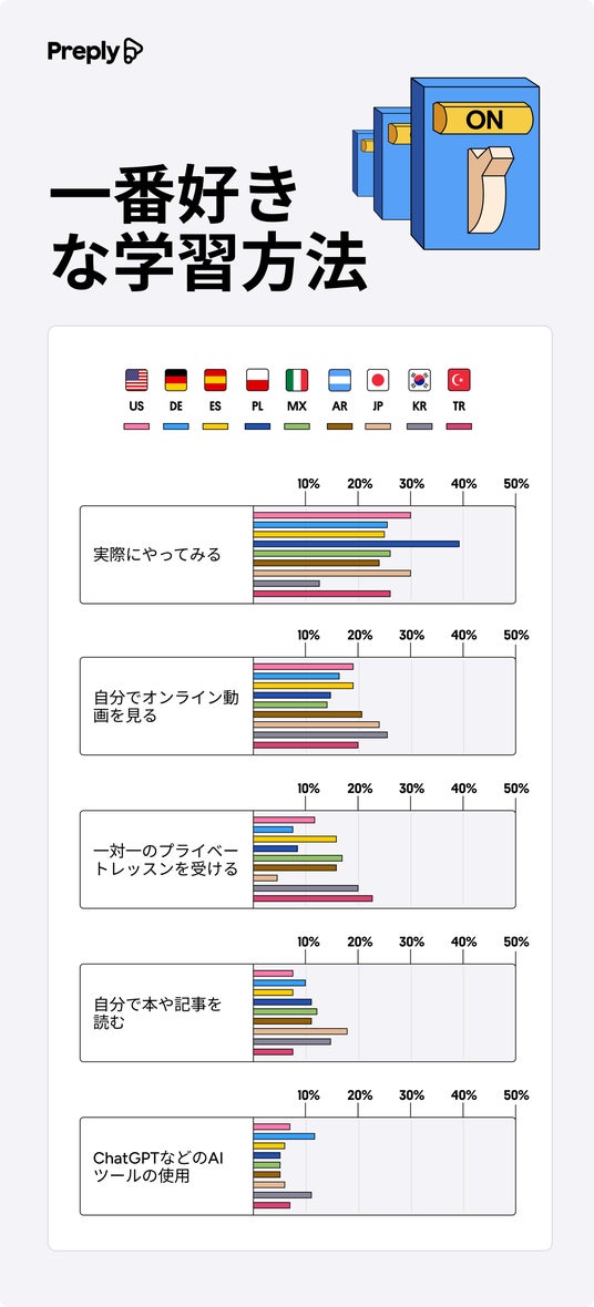 こうした変化を受け、マンツーマンの英会話個人レッスンや、韓国語個人レッスンを提供する、オンライン語学学習プラットフォーム Preply(プレプリー)は、AIと共存する世代の願望や学習習慣に関する調査を、世界各国で実施しました。