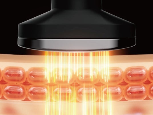 1回15分のお手軽ケアができ、中周波EMSによる筋肉刺激と、モーターによる物理的な振動、 赤色LED、ヒーターによる直感的な温かさ、異なる4つの機能が組み合わさる事で立体的で、やさしい使い心地を実現しています。
