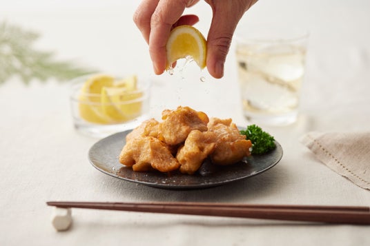 豆乳を搾る際の副産物「おから」と日本の伝統食である「こんにゃく」を組み合わせた「おからこんにゃく(R)」で作った動物性原材料不使用のからあげです。