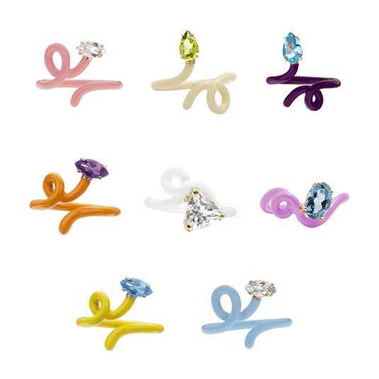 さらに、「アッシュ・ペー・フランス ビジュー 伊勢丹新宿店」ではイタリア・ミラノ発ジュエリーブランド「BEA BONGIASCA(ベア・ボンジャスカ)」の新作ピアスやジュエリーポーチをはじめ、定番コレクションのリング各種まで豊富にラインナップいたします。カラフルなエナメルと天然石、ゴールドが織りなす現代アートのようなポップなデザインのジュエリーが魅力の「ベア・ボンジャスカ」。ファインジュエリーならではの品質にこだわりつつも、1990年生まれのデザイナーと同じミレニアム世代も親しみを持てるような、伝統に捉われないエネルギッシュなスタイルが、デュア・リパやBLACKPINKなどの名だたるセレブリティをはじめ、世界中で支持を集めています。