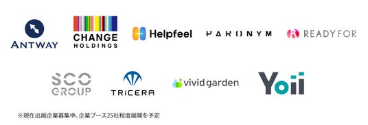 株式会社Antway / 株式会社チェンジホールディングス / 株式会社Helpfeel / H.I.F.株式会社 / 株式会社Link-US / オリジナルライフ株式会社 / パロニム株式会社 / READYFOR株式会社 / 株式会社SCOグループ / 株式会社TRiCERA / 株式会社ビビッドガーデン / 株式会社Yoii