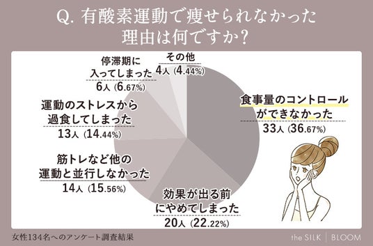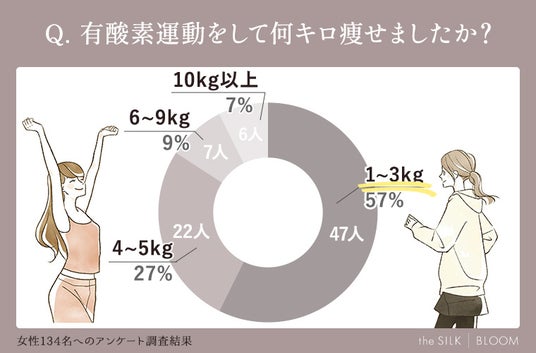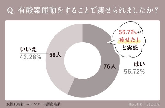 今回the SILK編集部で134名の女性に「有酸素運動で痩せられたか」について調査したところ、以下のような結果になりました。