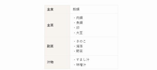 バランスのいい食事と聞くと難しく考えがちですが、以下のように主食・主菜・副菜が整った和定食が理想的です。