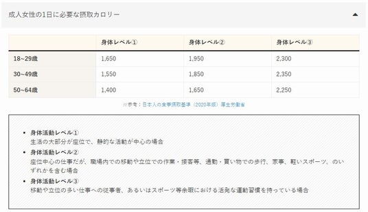 身体活動レベルと照らし合わせながら、1日にどのくらいカロリーを摂取すべきか確認してみてください!