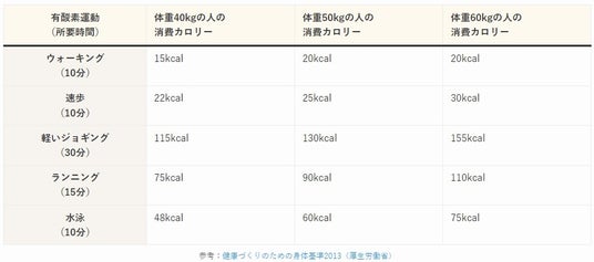 仮に1時間ウォーキングしても120kcal程度とお茶碗一杯分のご飯のカロリーも消費できないので、有酸素運動で痩せるには食事量のコントロールも必要不可欠。
