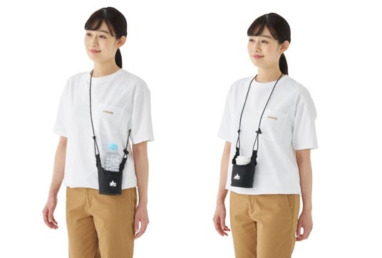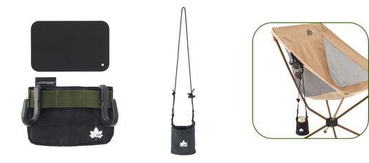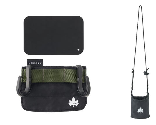 「Loopadd どこでもホルダー」は、缶やペットボトル、カップドリンクなど、手をふさがずスマートに持ち運びができるほか、別売りの「Loopadd どこでもマグネットループ」と組み合わせることで、バケットチェアなどに本品を吊り下げて、後付けのドリンクホルダーとしても活躍します。また、ベルトはコードロックでお好みの長さに調節ができ、首や肩がけ、斜めがけの使用が可能です。両サイドにはループを搭載しているため、カラビナを付ければ鍵などの小物収納にも便利です。