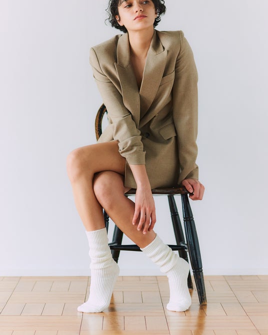 ルーズな表情とハリのある触感。 前シーズンよりリリースされたcrispyを更にアップデートしたモデル。 アクリルウールを入れ込むことで、ハリ感だけなくふっくらとした柔らかな表情もプラスされています。 リブ編み機をあえて低速でゆっくりと編み上げることで、ソフトな感触と表情に。 リラックス感がありながらも上質さを持ち合わせたソックスです。